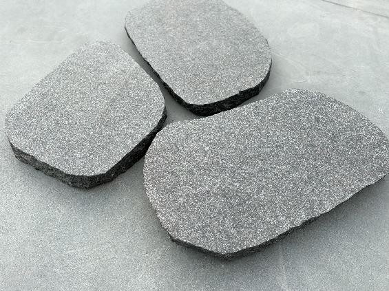Granito plokštės, įvairių išmatavimų (diametras 20-80 cm), 5 cm storio, juodos Natūralus akmuo – kokybiška medžiaga, natūraliai įsikomponuojanti į kraštovaizdį. Taigi, renkantis grindinio akmenį, svarbu papildyti esančią erdvę, o ne kurti atskirą. Natūraliai skeltos grindinio plokštės – dažnai pasirenkama grindinio medžiaga, kuri naudojama kiemo, sodo takelių įrengimui, pėsčiųjų zonoms ar kitoms teritorijoms. Natūralaus akmens grindinio plokštės yra ilgaamžės ir beveik nereikalaujančios priežiūros, sukuria patogumą ir komfortą. Grindinio plokštės vertinamos dėl šių savybių: